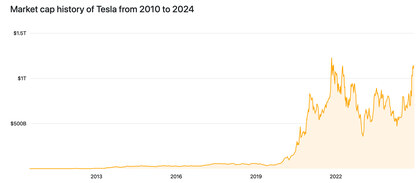 Cotización histórica de Tesla | Fuente: companiesmarketcap.com